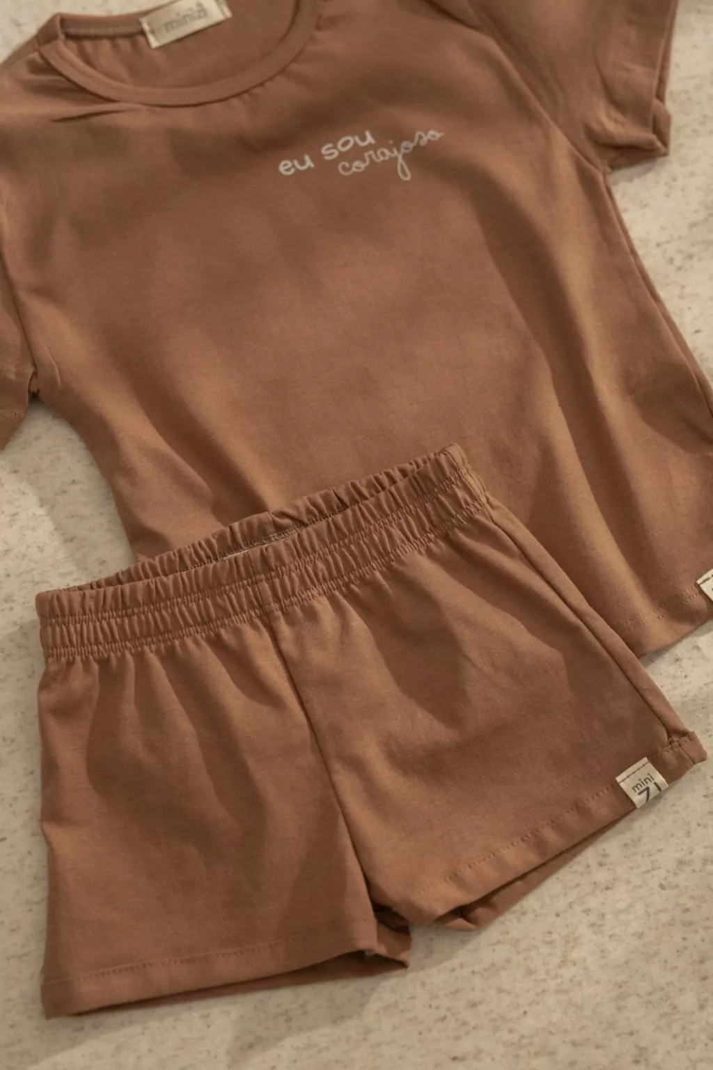 O shorts, com seu corte prático e confortável, completa o conjunto de forma harmoniosa. Embora não seja ajustável, seu design é pensado para proporcionar um ajuste ideal e confortável para as crianças.